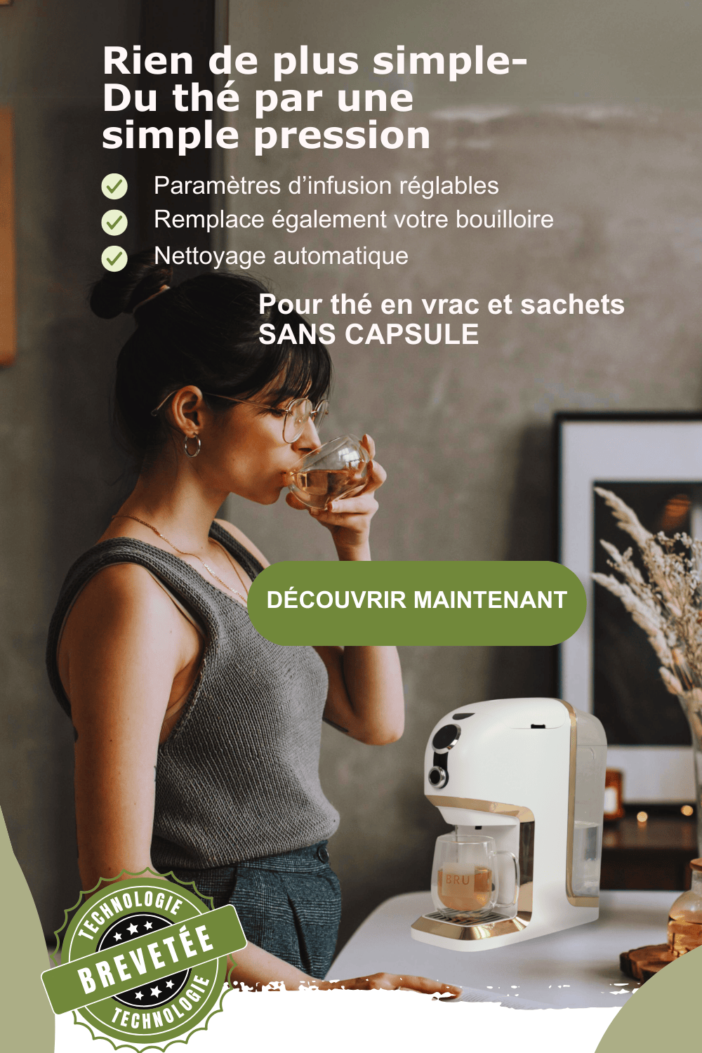 La préparation de thé et d'infusions n'a jamais été aussi facile qu'avec le BRU Maker One.